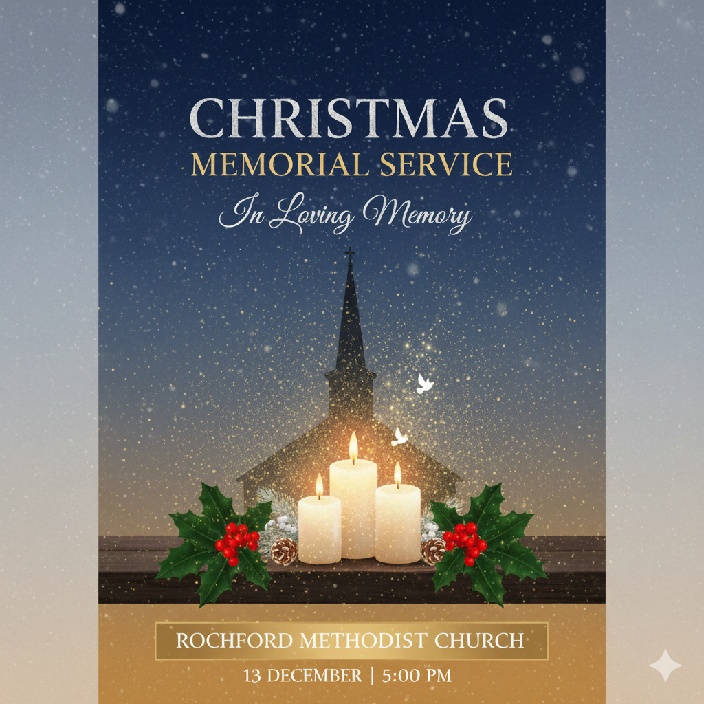 Christmas Carol Memorial Service - 13 December - 5.00pm - An opportunity to take time out to remember those who we miss the most at Christmas. This will take the form of a short service of reflection to honour those who have meant so much to us. Tea and coffee will be served at the end of the service.