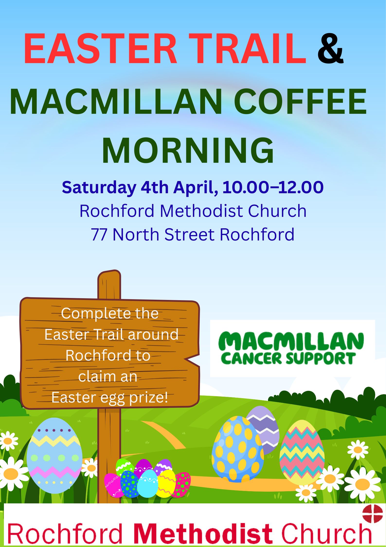 Easter Trail & Macmillan Coffee Morning - Saturday 4 April - 10.00 - 12.00noon. Complete the Easter trail around Rochford to claim an Easter egg prize!